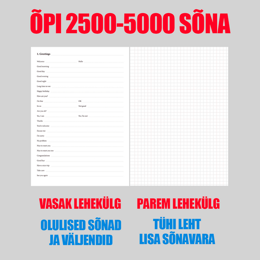The left pages contain already 2500 words that you just need to fill in the blanks. Fill the empty right pages and extra spreads in the end of the notebook and reach up to 4000-5000 words of vocabulary organized under 68 different topics.