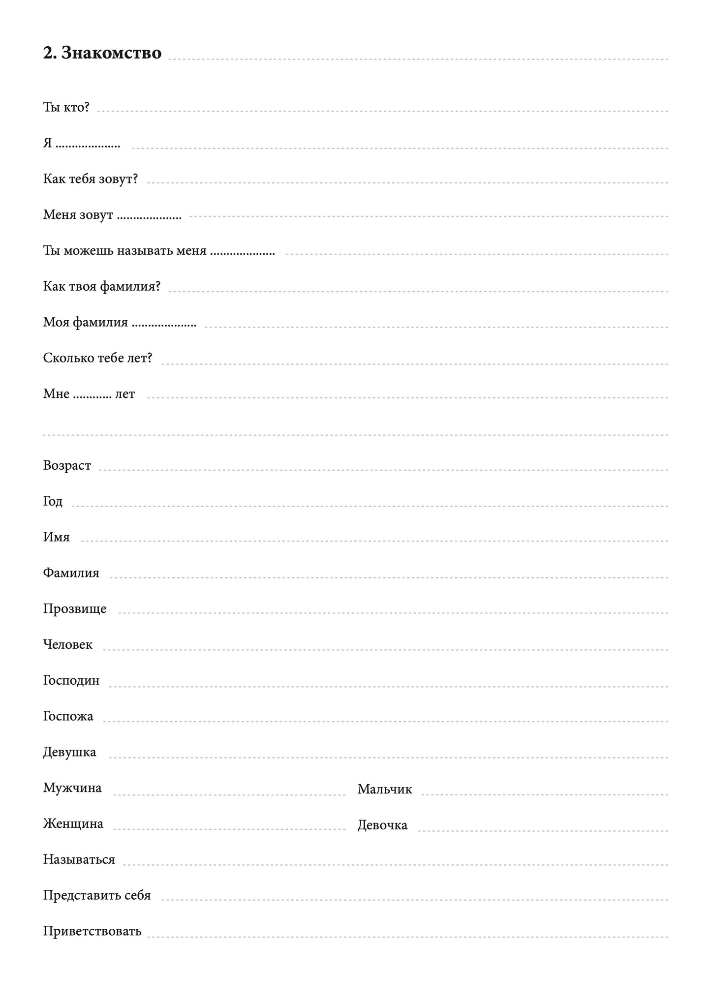 Заполнив пустые страницы, Ваш словарный запас определённо превысит 3000 слов и, возможно, даже достигнет 4000-5000 слов, в зависимости от того, что Вы решите записать на пустых страницах. Вся лексика структурирована в зависимости от контекста, а не хаотически разбросана, как в обычной тетради. Таким образом, наш продукт помогает структурировать и организовать Ваш путь в изучении иностранного языка.