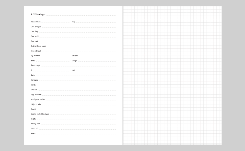 - Högersida(Tom sida med rutnät for att läggatil ord、对话者、anteckningar osv. om ämnet)